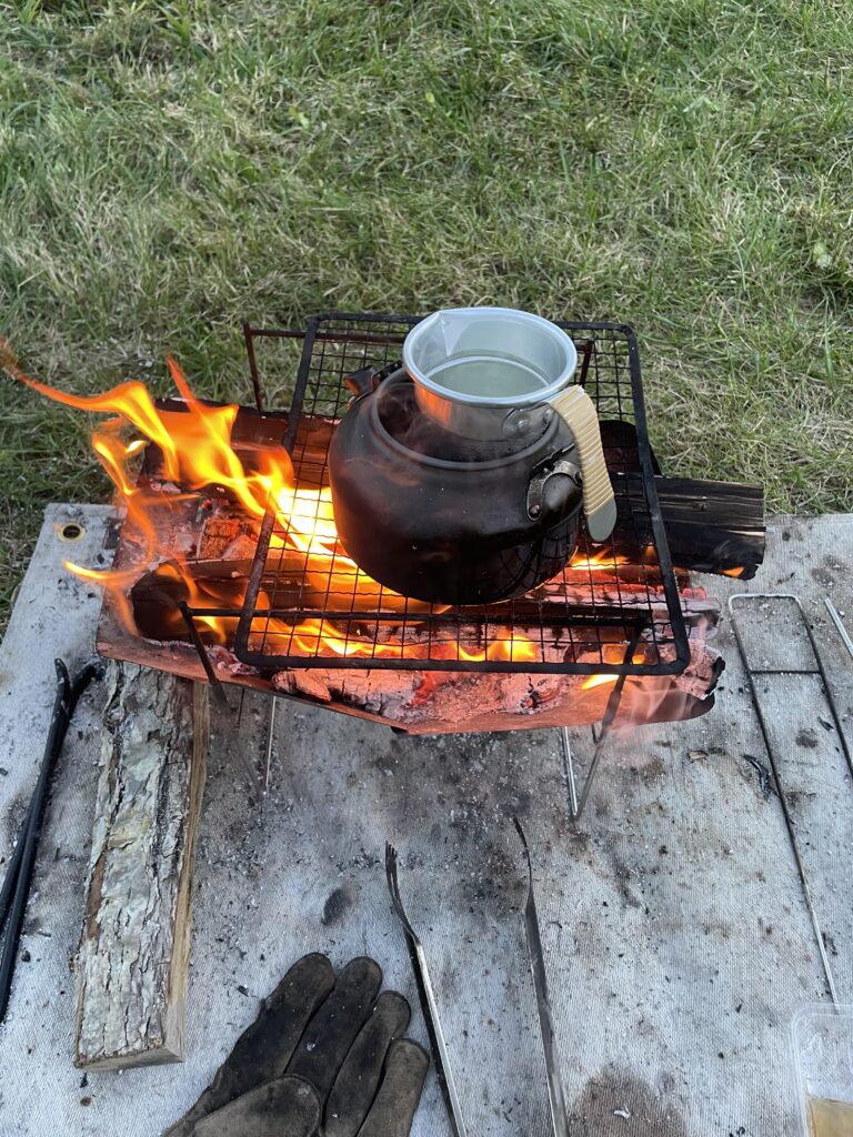 私自身、焚き火に手を出した頃は、ただ燃やすことに夢中でした。でもある日、小さなケトルを火にかけて、湯が沸